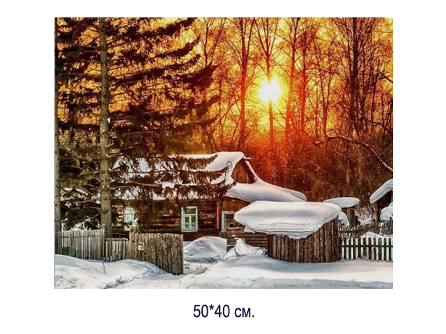 Алмазная мозаика арт. MD5119 Домик в зимнем лесу 40*50 полная выкладка на подрамнике