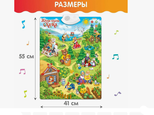 Плакат обуч. арт. KD261A"/5007 Мир сказок на бат. 45*16*4,5 в кор.~)•Плакат воспроизводит: 22 звука, 10 сказок и потешек.