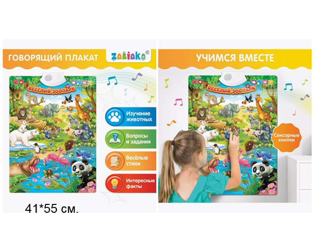 Плакат обуч. арт. 265 "Зоопарк" интеракт. на бат. в пакете._~=•/100шт./