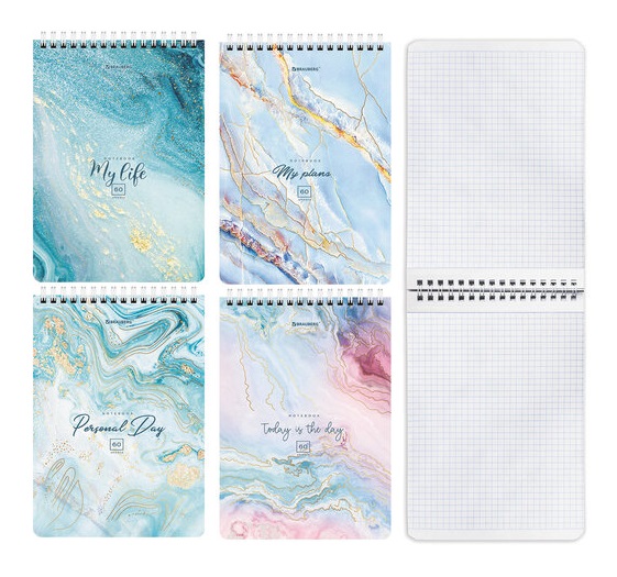 кс_Блокнот арт. 114360 А5 (146х206 мм), 60 л. гребень, картон, клетка BRAUBERG "Мрамор"Формат: А5