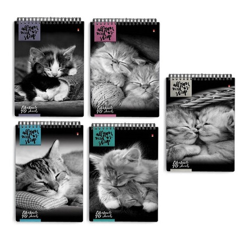 кс_Блокнот арт. 111287 А5, 40 л. гребень, ламинирован. картон, клетка Альт "Кошки" (5видов)3-40-462Формат: А5