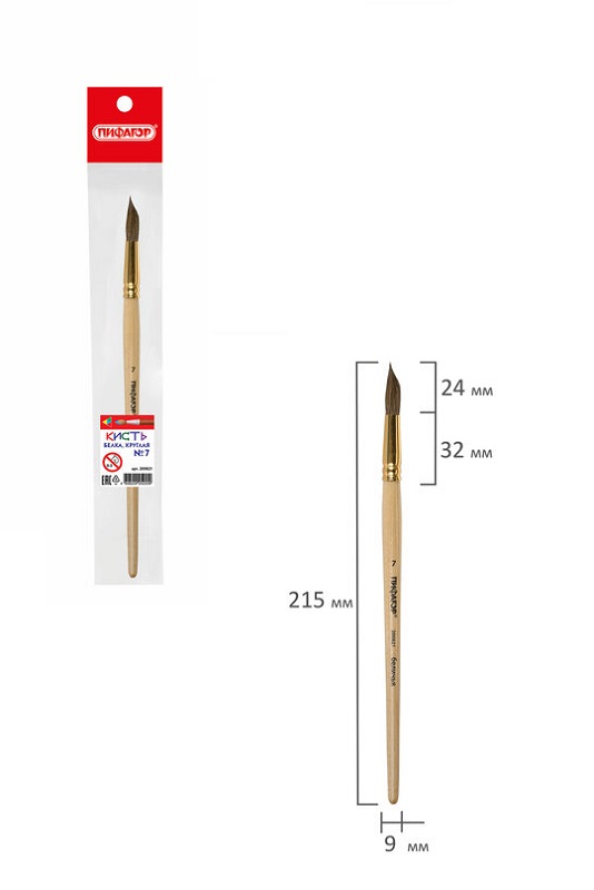 кс_Кисть арт. 200821 ПИФАГОР БЕЛКА круглая №7 дерев.лакиров.ручка, с колпачком, пакет с подвесомКоличество кистей в наборе: 1 шт.