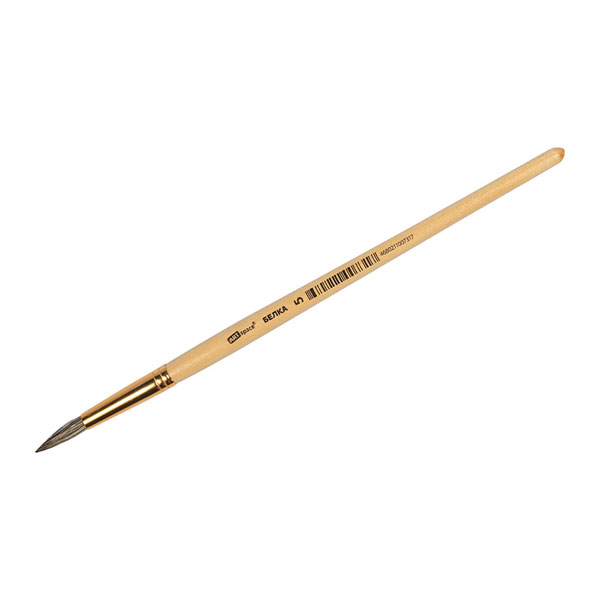кв_Кисть художественная арт. SH5_2368 Круглая №05 "Art Space" Белка (1/25)Круглая кисть №05 позволяет создавать на белом листе удивительные картины и образы. Она выполнена из волоса белки. Изделие имеет длинную деревянную ручку и металлическую обойму.