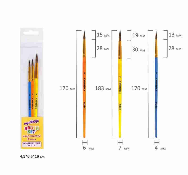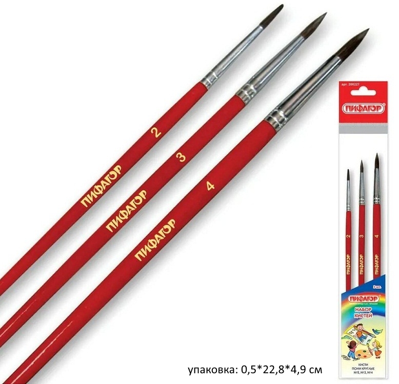 кс_Кисти арт. 200227 ПИФАГОР набор 3 шт. ПОНИ: круглые № 2, 3, 4 пакет с европодвесомТип кисти: круглая