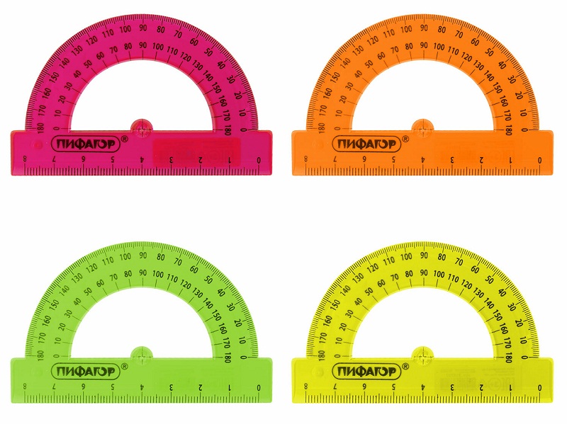 кс_Транспортир арт. 210792 ПИФАГОР 8 см, 180 градусов, прозрачный, неоновый, ассортиПроизводство: Россия