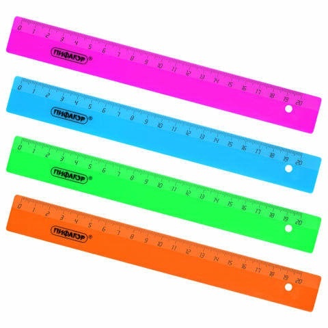 кс_Линейка арт. 210788 Пластиковая 20 см ПИФАГОР, непрозрачная, неоновая, ассортиДлина шкалы: 20 см