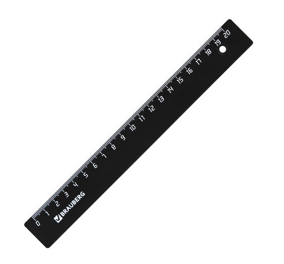 кс_Линейка арт. 210607 Пластиковая 20 см, BRAUBERG, непрозрачная, чернаяДлина шкалы: 20 см