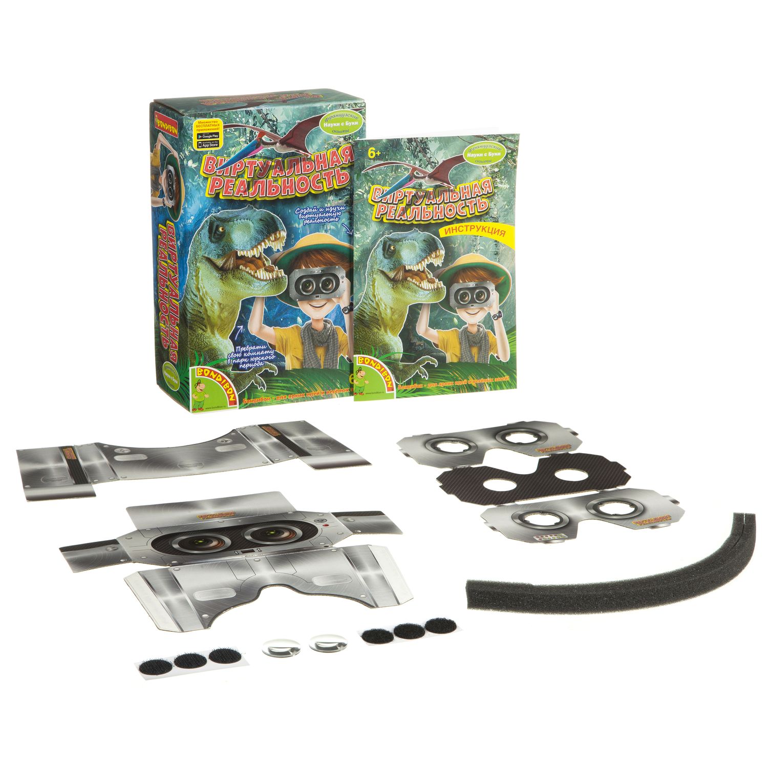 - Французские опыты Науки с Буки Bondibon, Виртуальная реальность, арт. WS/938×Французские опыты Науки с Буки Bondibon, Виртуальная реальность, арт. WS/938Попасть в парк юрского периода, не выходя из дома? Легко! Всё, что для этого нужно, это собрать очки виртуальной реальности и скачать в свой телефон одно из множества бесплатных приложений для виртуальной реальности, которые предлагает интернет.