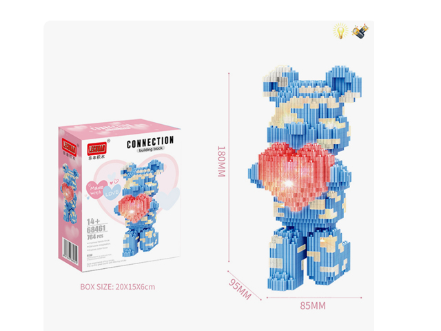 Конструктор арт. 68461 Микро Медведь голубой с сердцем свет. 764 дет. в кор.=Конструктор арт. 68461 Микро Медведь голубой с сердцем свет. 764 дет. в кор.=