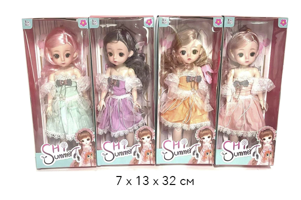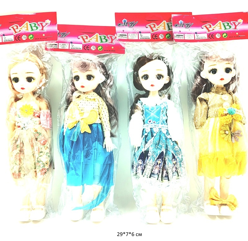 Размер упаковки: 24 х 34 х 5 см1 355.50 руб. - Кукла арт. XL-3093 Шарнирная в ассортименте в кор._•×Кукла арт. XL-3093 Шарнирная в ассортименте в кор._•Коллекционная кукла на шарнирах станет идеальным подарком для девочки. Красивый наряд куколки, реалистичное личико и роскошные волосы вызовут восторг и восхищение у ее обладательницы. У куклы подвижные руки (запястья, локоть) и ноги (колени), голова и туловище. Очаровательная съемная одежда и обувь – можно переодевать и создавать другой образ. Длинные густые локоны красиво переливаются и легко расчесываются – можно менять прически.