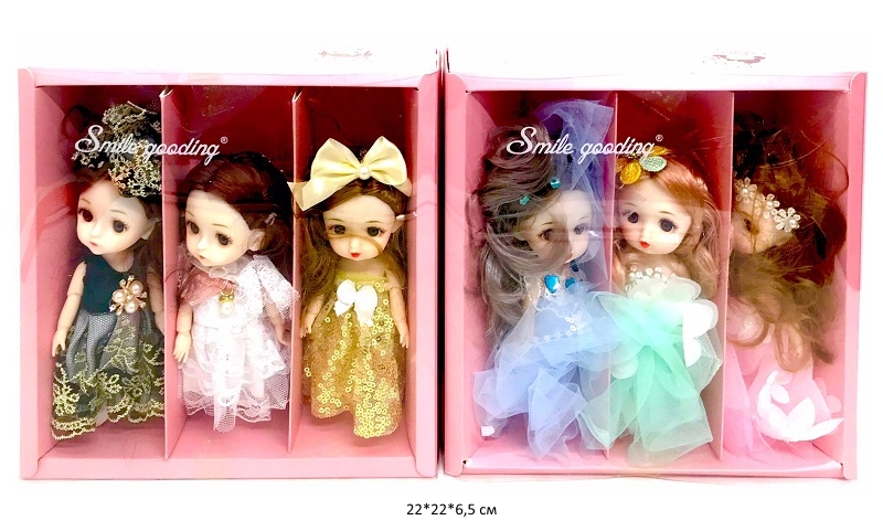 - Кукла арт. XL-16005 Шарнирная Набор 3 шт. в ассортименте в кор._•=×Кукла арт. XL-16005 Шарнирная Набор 3 шт. в ассортименте в кор._•=Набор из 3 очаровательных кукол на шарнирах станет идеальным подарком для девочки. Красивые наряды, реалистичные личики и роскошные волосы вызовут восторг и восхищение. У кукол подвижные руки (запястья, локоть) и ноги (колени), голова и туловище. Очаровательная съемная одежда и обувь – можно переодевать и создавать другой образ. Длинные густые локоны красиво переливаются и легко расчесываются – можно менять прически.