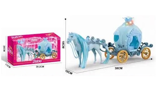 Карета арт. 686-818 С куклой, лошадью на бат. свет. звук в кор. 38*12,5*19Если нажать на кнопку на карете, то мы услышим звуки ржания и стука копыт лошадки и приятную мелодию. В это время карета будет красиво подсвечиваться разными цветами.