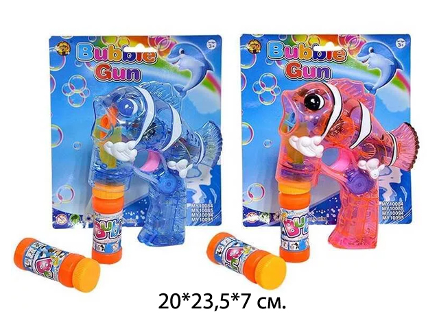 Пистолет арт. MY154/10084Y-2 Рыбка-клоун прозрачная и пузыри мыльные цвета микс на листе_/72 шт./