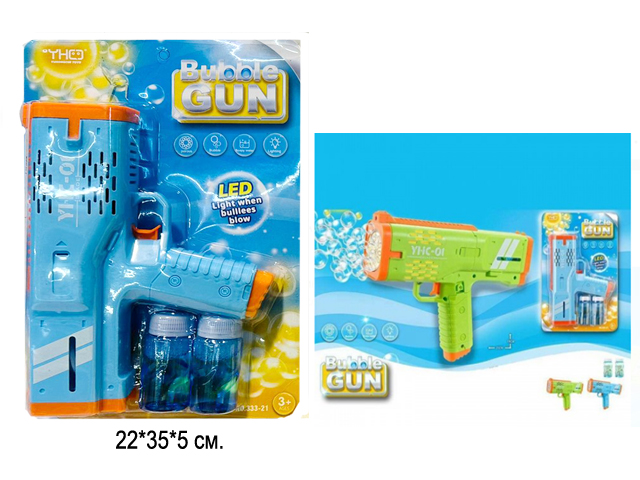 Пистолет арт. 333-21 Бластер с подсветкой и мыльные пузыри в кор.•