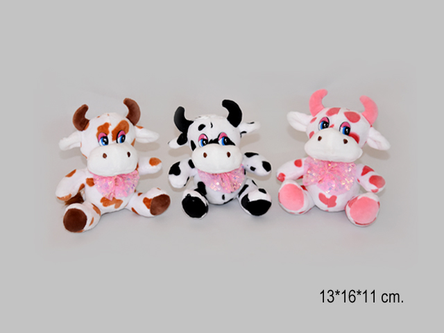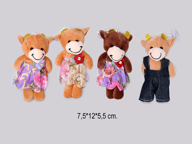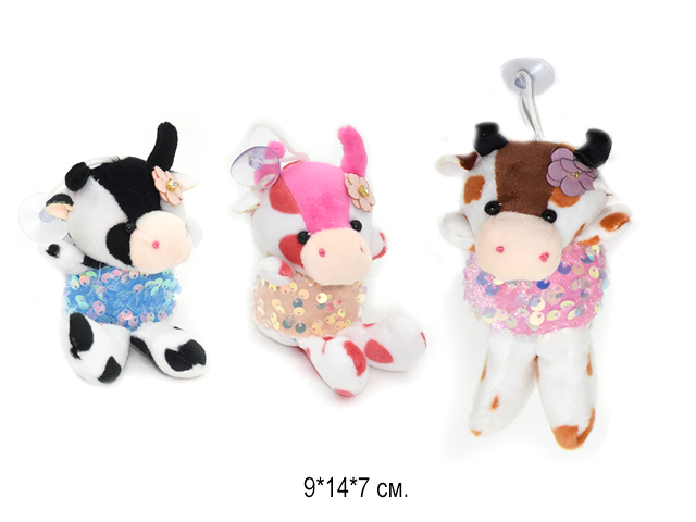 им Коровка арт. 11-M В кофточке с пайетками, цветочком в пак.(24шт.)**Благодаря присоске, игрушку можно подвесить на любую гладкую поверхность (окно или зеркало)