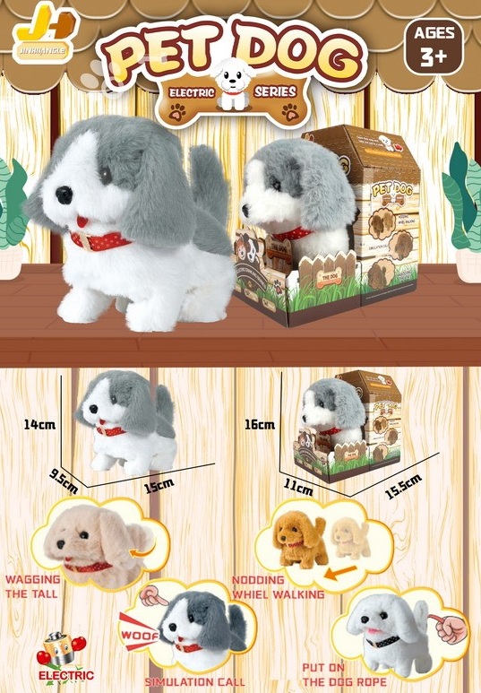 им Собака арт. 810-25" Серо-белая на батар. в коробке 15,5*11*16У питомца мягкая и красивая шерстка. Щенок ходит, гавкает, виляет хвостиком и поворачивает голову. Игрушка включается при нажатии на кнопку на поводке.