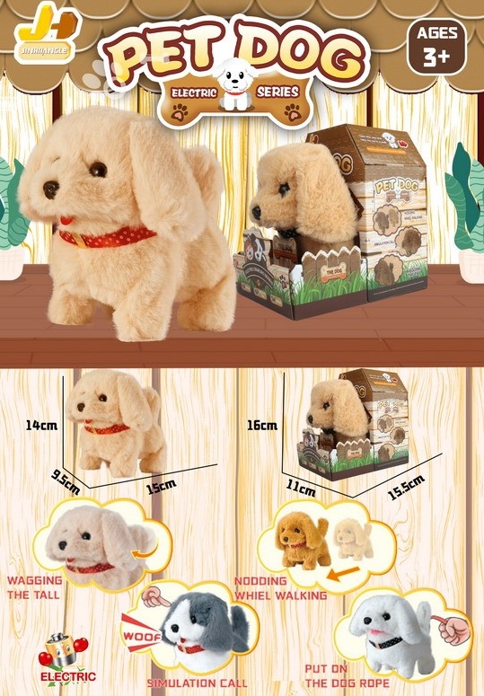 им Собака арт. 810-24" Бежевая на батар. в коробке 15,5*11*16У питомца мягкая и красивая шерстка. Щенок ходит, гавкает, виляет хвостиком и поворачивает голову. Игрушка включается при нажатии на кнопку на поводке.