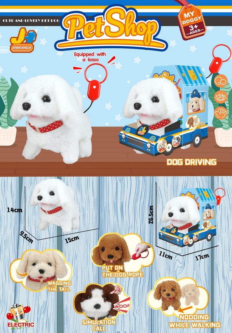 им Собака арт. 810-38" Белая на бат. в коробке 17*11*26,5У питомца мягкая и красивая шерстка. Щенок ходит, гавкает, виляет хвостиком и поворачивает голову. Игрушка включается при нажатии на кнопку на поводке.