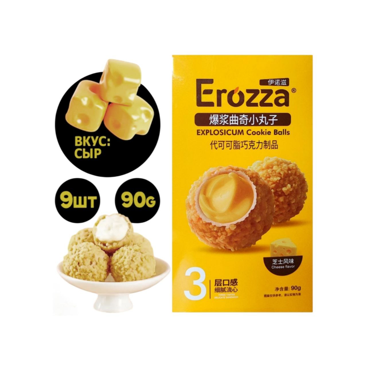 Печенье арт. 140776 Вафельный шарик с начинкой вкус "Сыр" 90 г в кор.*