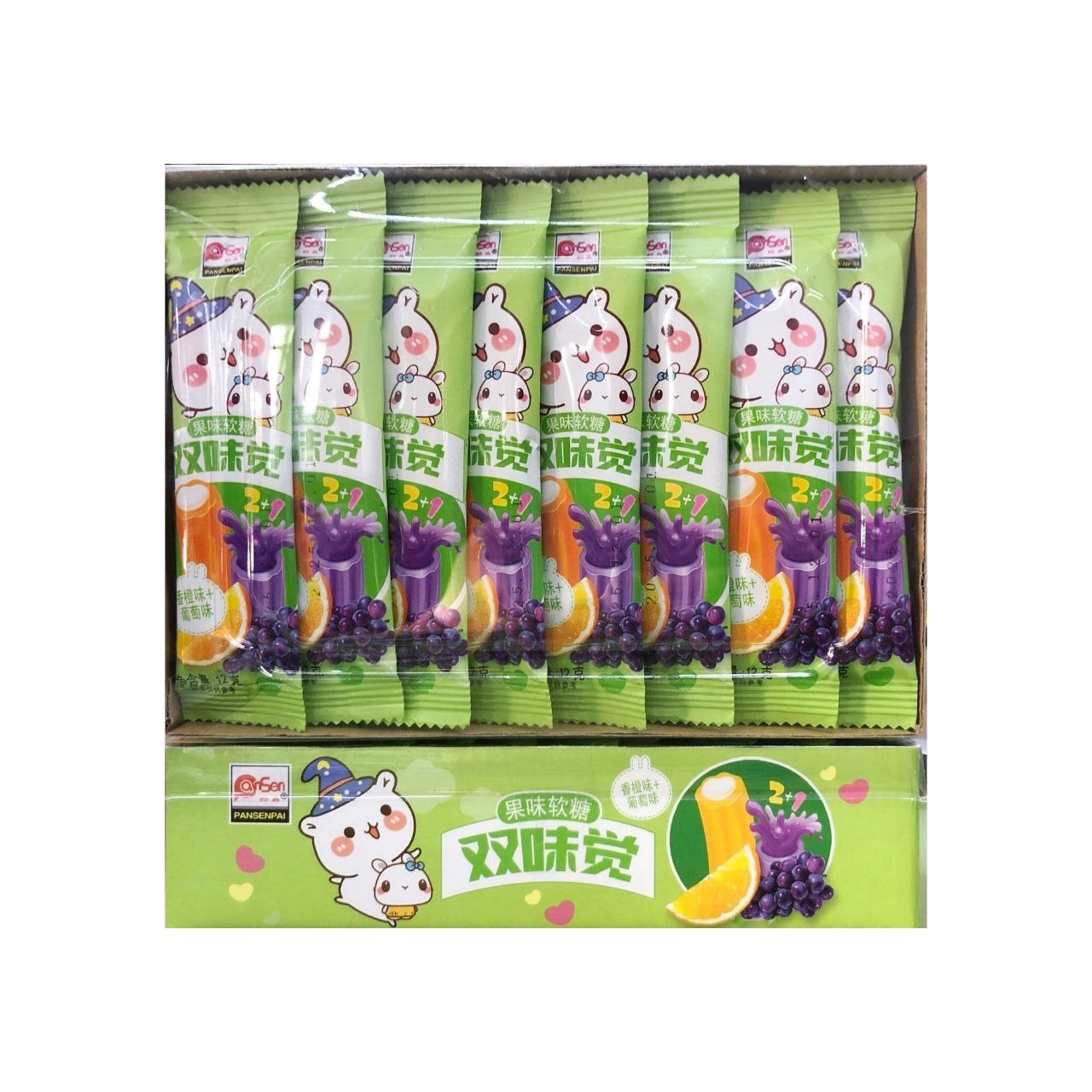 Конфета арт. 960090-1 Жевательная Трубочка-тянучка "Апельсин-виноград" 12 г 30 шт в зеленой кор.*