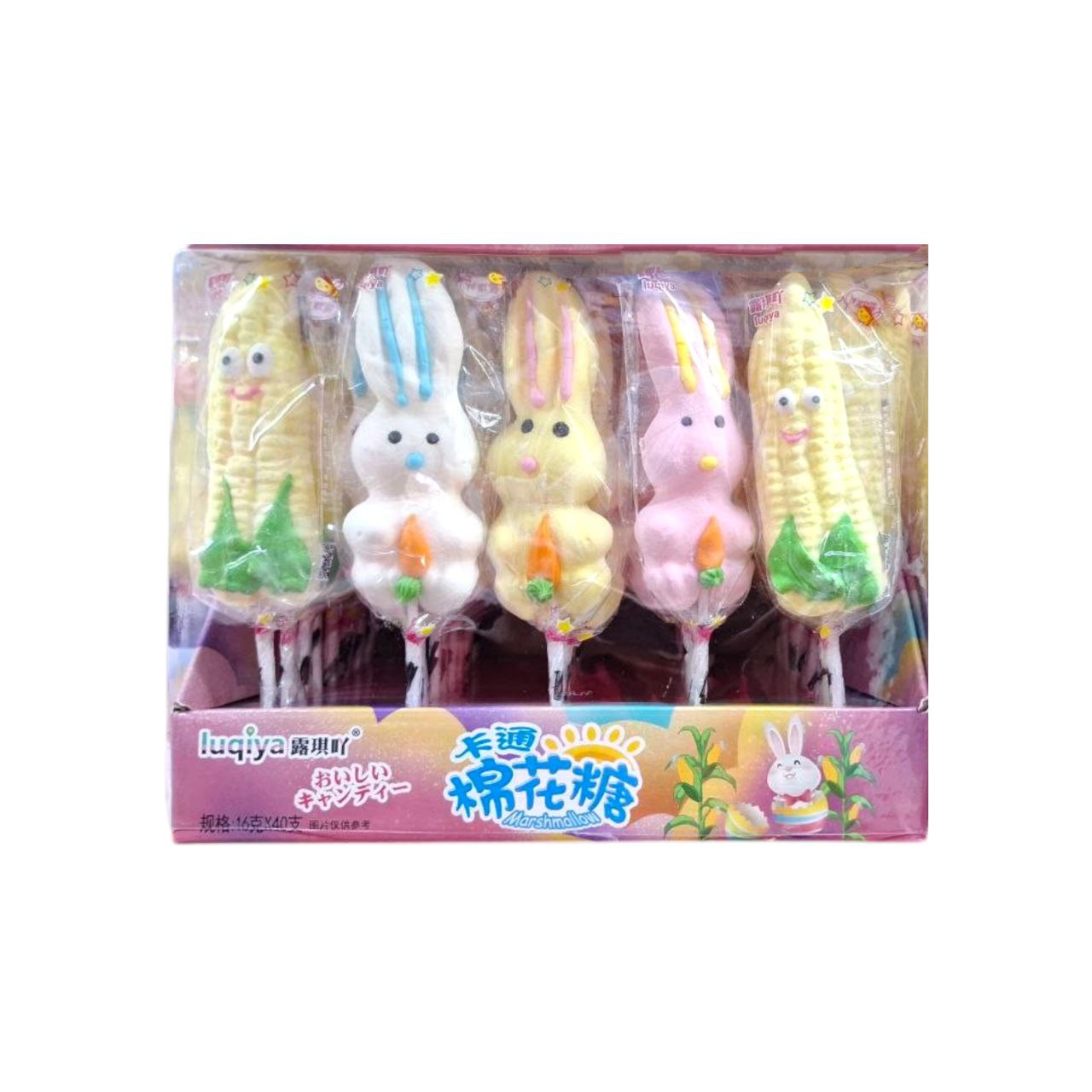 Маршмеллоу арт. 466809 На палочке "Зайка/кукуруза" 16 г 40 шт. в розовой кор.*