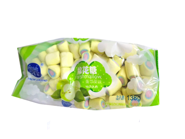 Маршмеллоу арт. 884578 Рулетики цветные "Зеленое яблоко" 138 г в пак.*