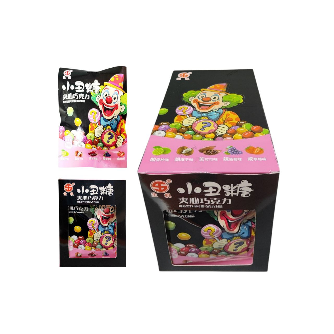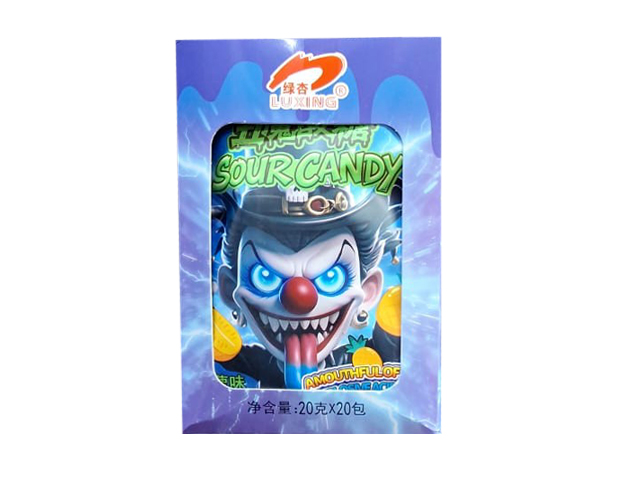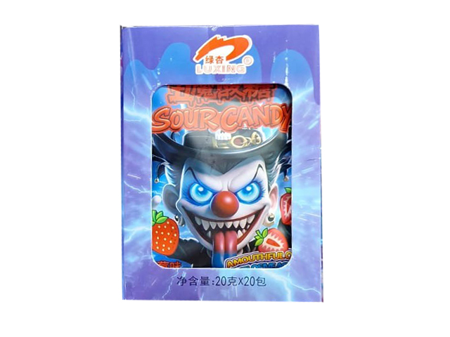 Конфета арт. 102194 "Клоун" кислая вкус черника 20 г в пак. 20 шт. в кор.*#