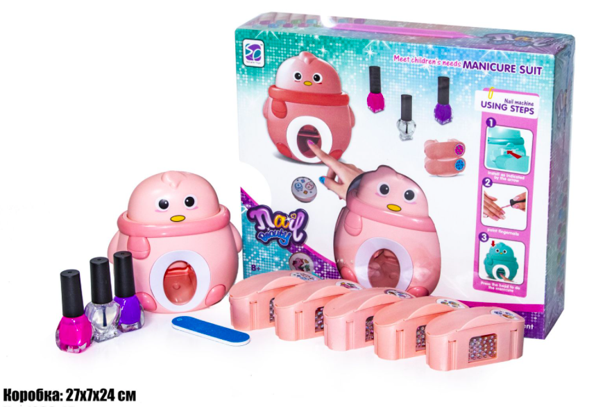 Набор для маникюра арт. 1026-14 С лампой в кор.•/48 шт./Сначала выберите узор и вставьте его в машину. Затем покрасьте каждый ноготь одним из нетоксичных базовых слоев лака (в комплект входят два цвета) и подождите пять минут, чтобы ногти высохли. Наконец, вставьте ноготь в машину и нажмите кнопку, чтобы поставить штамп. Удалите палец из штампа, чтобы увидеть ноготь с идеальным рисунком! Покройте слоем прозрачного верхнего покрытия (входит в комплект)!