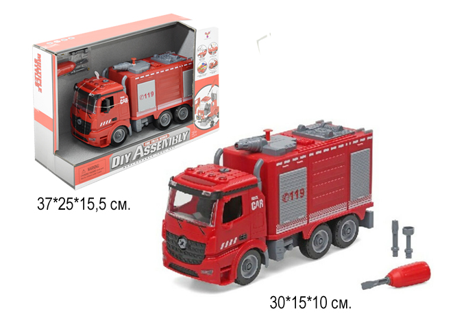 Машина на батар. арт. 9080CYW" Пожарная с отверткой в кор. /24шт.//бл.12/Набор позволит самостоятельно собрать машинку.