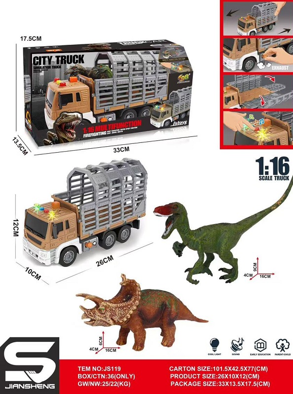 Машина на батар. арт. JS119 Грузовик с фигурками динозавров, свет, звук в кор.)