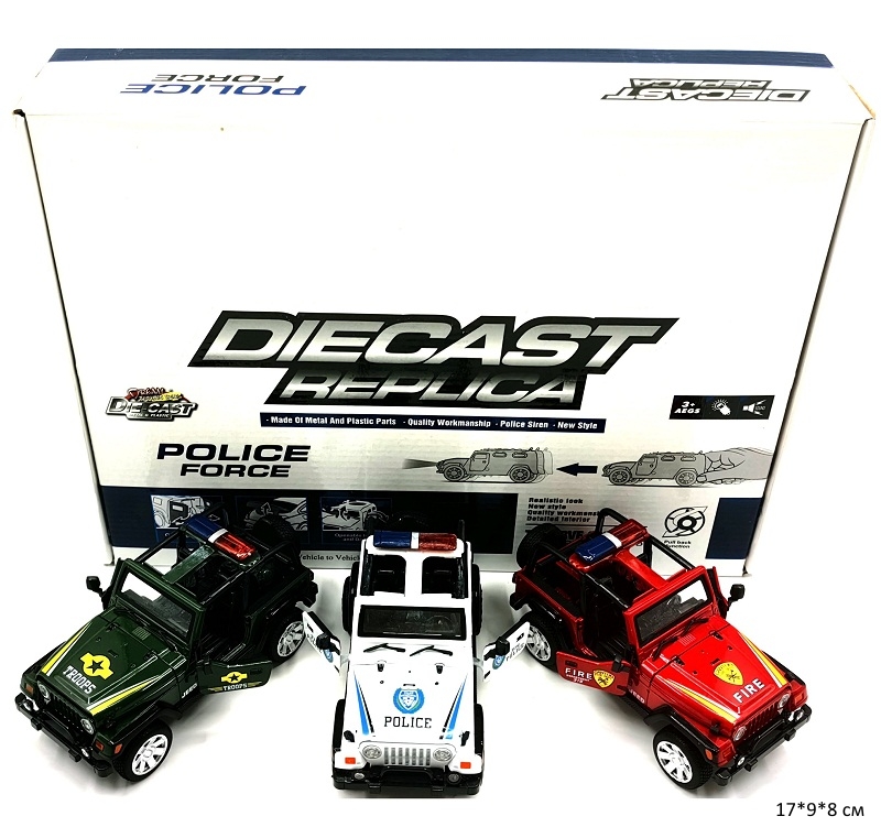 Модель металл. арт. 868D Джип Военный, Полиция, Пожарная инерц. (6 шт.) шоубокс_