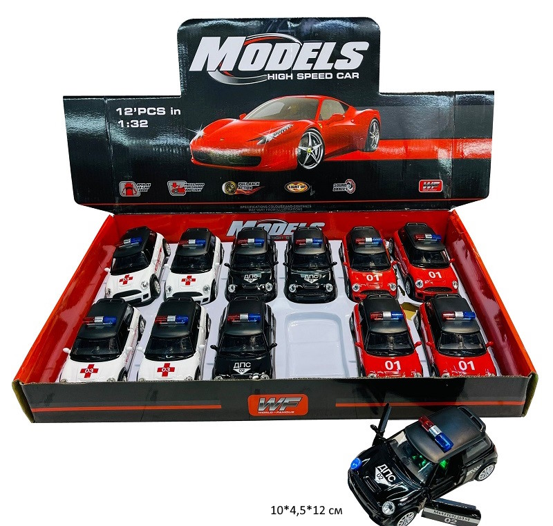 Модель металл. арт. 998-7E Скорая, ДПС, Пожарная инерц. свет, звук (12шт.) шоубокс•