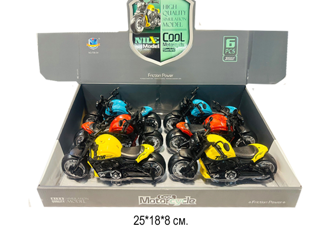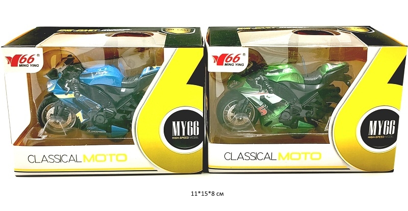 Мотоцикл инерц. арт. MY66-M2235 Металл (12 шт.) шоубокс•У модели есть инерционный механизм: оттяните игрушку назад и отпустите - мотоцикл умчится вперед, набирая скорость.