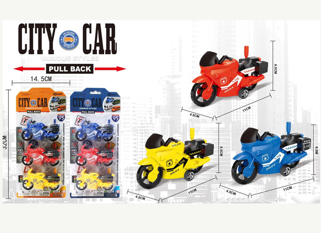 Машина инерц. арт. MY66-M2221 Запуск 2 мотоцикла (6 шт.) в кор.°~_Кнропка включения находится на корпусе автомобиля снизу. Работает от батареек (есть в комплекте).