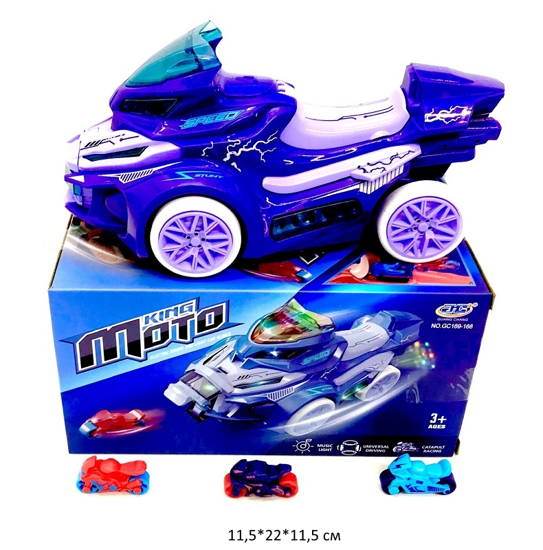 Мотоцикл на батар. арт. GC169-168 С катапультой свет, звук в кор._Игрушка очень интересного футуристичного вида, на трех колесах, маневренная! Мотоцикл выстреливает из себя маленькие похожие мотоциклы. Игрушка катается в разные стороны под музыку, сверкая при этом разноцветными огоньками.