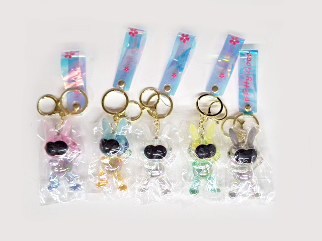 Брелок арт. 805006 На руку Зайка прозрачный в черной маске цвета микс в пак.